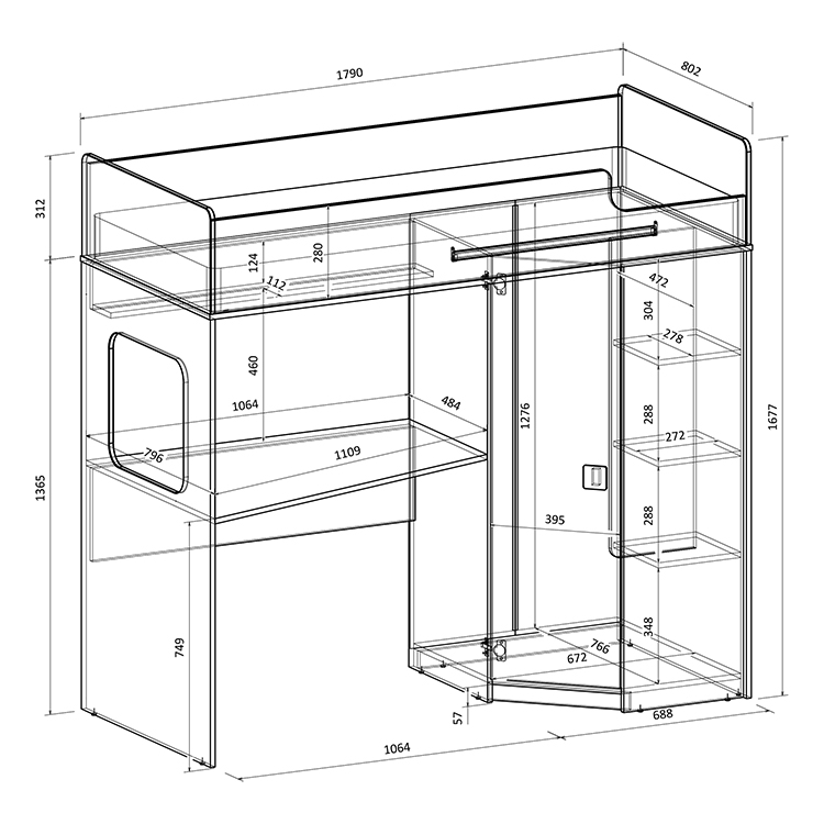 Учебная зона со столом под спальным местом открывает возможности для письменных работ,а также здесь удобно расположить ноутбук.